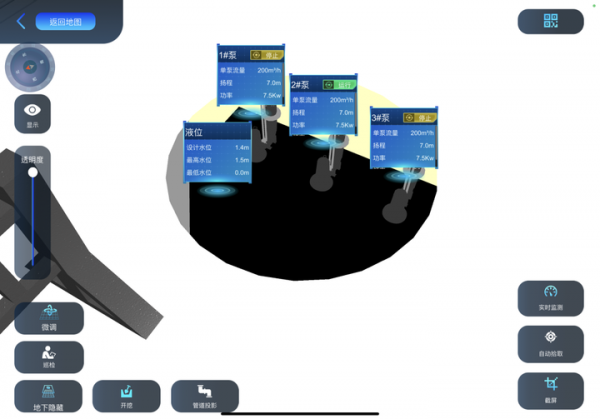 運檢人員只需手持一臺移動設備,掃描二維碼或直接GPS定位,便能進入泵站、井蓋等具體地點,所有設施設備以三維圖形立體呈現,甚至連“地下隱藏”的水泵,都能點擊“開挖“鍵,檢查其運行狀態。