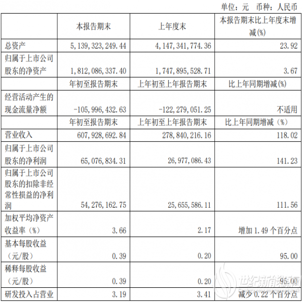 張家港廣大特材股份有限公司(簡稱“廣大特材”)日前發布2021年第一季度報告。該公司一季度實現主營業務收入6.08億元,同比增長118.02%;實現歸屬于上市公司股東的凈利潤0.65億元,同比增長141.23%。